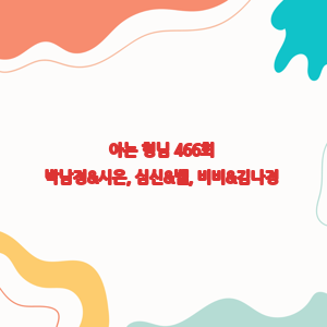 가족의 모습을 통해 우리는 어떤 것을 배울 수 있을까요? 이번 '아는 형님' 466회에서는 다양한 가족들이 출연해 유쾌한 모습을 선보였습니다. 과연 이번 회에서는 어떤 재미있고 감동적인 이야기들이 펼쳐졌을까요?