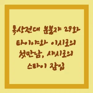 과연 이 드라마의 숨겨진 비밀을 알고 계신가요? 이번 29화에서는 주인공 이시로(샤시로)가 ISA의 의뢰를 받아 아오리 패밀리의 저택에 잠입하게 됩니다. 그리고 그 과정에서 타이야와 처음 만나게 되는데, 이들의 만남이 앞으로 어떤 전개를 이끌어갈지 궁금하지 않으신가요?