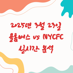 이상으로 2025년 3월 23일 콜롬버스 vs NYCFC 경기에 대한 실시간 분석을 살펴보았습니다. 양 팀의 전력과 주요 선수들의 활약상, 그리고 경기 전략을 면밀히 검토해 보았죠. 이번 경기가 어떤 결과로 귀결될지 궁금하시나요? 또한 이번 분석을 통해 어떤 점을 배우셨나요?