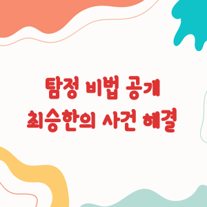 범죄 사건을 해결하는 데 어려움을 겪고 계신가요? 혹시 탐정들이 사용하는 비밀스러운 기술들을 알고 싶으신가요? 오늘 여러분께 최승한 탐정의 사건 해결 비법을 공개하겠습니다.